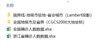一、课程数据:全国和浙江省的疫情累计确诊人数数据;全国和浙江省矢量地图