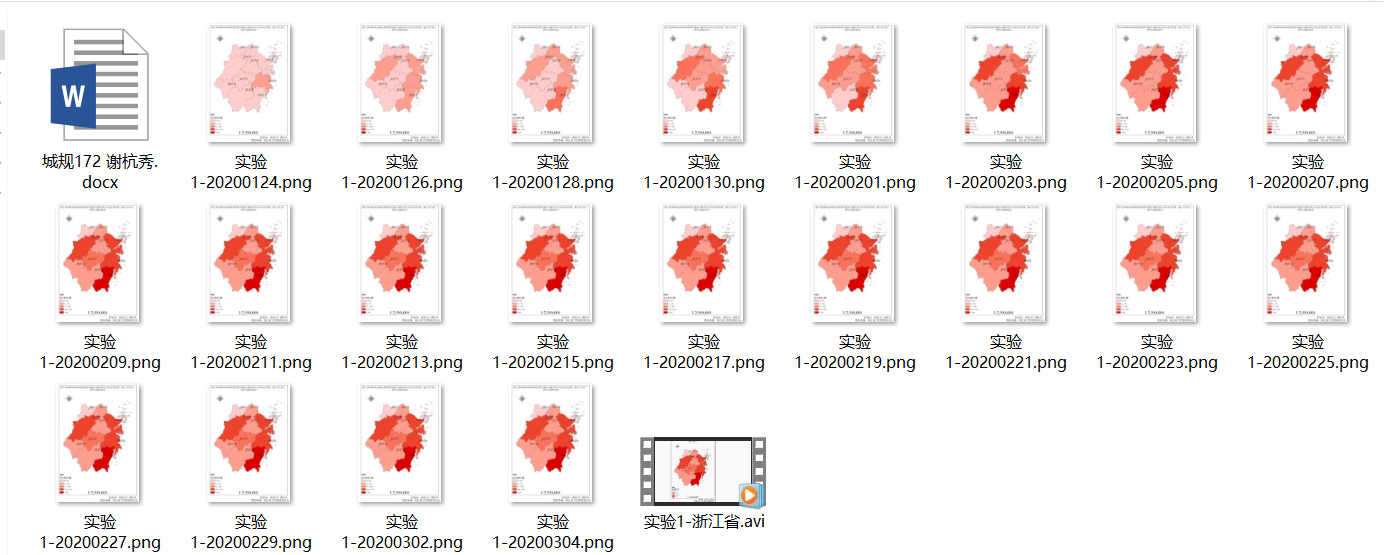 (2)浙江省1月24日-3月4日的疫情地图(疫情累计确诊人数数据已提供),共21幅;并制作出疫情累计确诊人数空间分布图。注意:数据等级划分标准要保持一致。