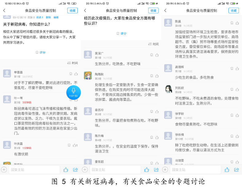 青年党员冯莉老师通过课程《食品安全与质量控制》将食品安全与新冠肺炎病毒相联系,通过活生生的例子为17级食品专业的学生传达食品安全的重要性,通过精选的视频资源(如史诗级:病毒与细胞大战)向学生讲解病毒是如何侵害人体细胞,最终危害到生命健康。同时,积极开展话题讨论,让学生分享自己的感受,分享有关新冠肺炎病毒,有关食品安全的了解认识。结果发现,学生们参与度很高,讨论十分活跃。在分享交流的同时,学生们的食品安全意识也在逐步提高。