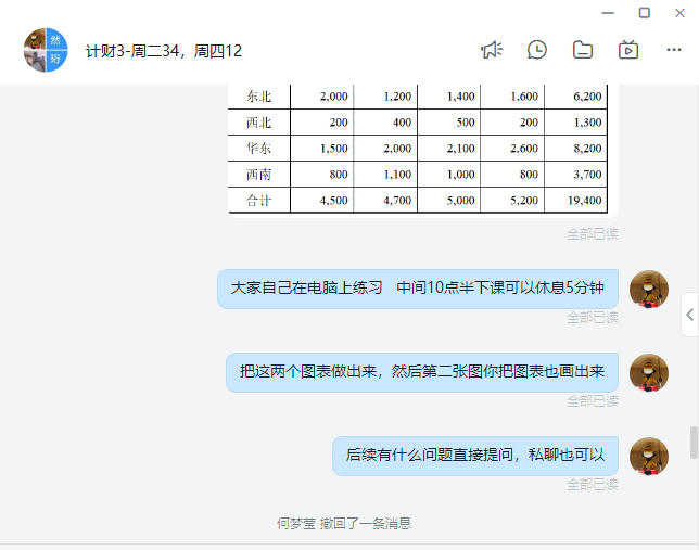 由于平台的不稳定性,冯老师通常使用“超星+钉钉”双平台教学模式,以钉钉作为与学生沟通的主要桥梁,亦成为超星平台崩溃后第一候补教学平台。钉钉功能十分强大,在平台停止签到、选人、抢答等互动功能后,冯老师利用钉钉群投票系统作为签到手段,利用Excel软件制作随机点名,在群中保持与学生的良好互动,保障教学氛围,保证学生的学习兴趣与动力。同时,对于《计算机财务管理》这门课程,Excel软件是课程中的教学软件,通过学以致用,可以给学生一个良好的启发。