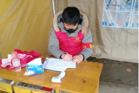 姜雨欣,晨晓艺术与设计学院视觉传达设计193班,在疫情发生过程中,她一直密切关注疫情情况,想为抵抗疫情出自己的一份力,这一想法得到家人的支持,于是她主动请愿参加家乡疫情防控志愿者服务。主要进行镇上道路卡口巡查执勤,主要对道路来往车辆尤其是外地车辆无通行证的人员记录,每两天进行一次换卡口巡查,主要在下午十二点开始进行,到五点换班,网格排查记录和进行核实信息,一一落实到位。为了阻隔疫情传播,全国各地纷纷在机场、火车站、道路站点设立卡点,在这些阻截传播的节点上,青年志愿者也发挥着重要作用。