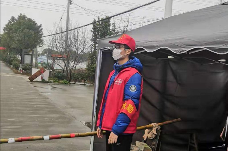 学生党员徐少蔚同志自2月1日在浙江省嘉兴市海宁市长安镇天明村参加疫情防控工作,积极响应号召,履行党员义务。密切关注所在地的疫情情况,并利用手机微信将情况告知居民。在任务下达之初,徐少蔚同学积极参与卡点设施的建设,并担任了第一次的执勤任务,在第二天为每家每户发放通行证与《告村民书》。后续几天里在固定卡点执勤,对进出的车辆都要仔细询问其去向和来处,并检查其通行证是否正确。当地的执勤工作是以一天三班的轮班方式,工作时间较长,感染的风险与恶劣的天气并存。但这并不能打倒他,他表示:“在疫情面前我们更要展示党员的作风,用坚韧不拔的毅力抗击疫情,迎难而上。”