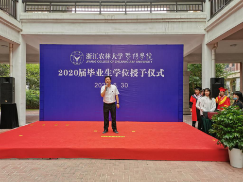 上午10时,商学院2020届毕业生学位授予仪式举行,学院副院长李文莉,商学院党政班子成员,毕业班班主任、导师,全体辅导员、毕业生参加仪式。学院党总支书记潘小承宣布学位授予仪式开始。