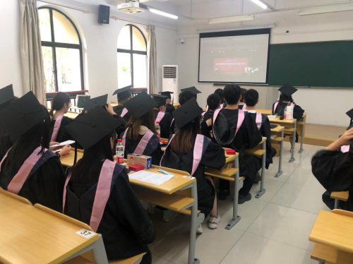 上午9时,商学院2020届毕业生在分会场远程观看学院2020届毕业典礼。