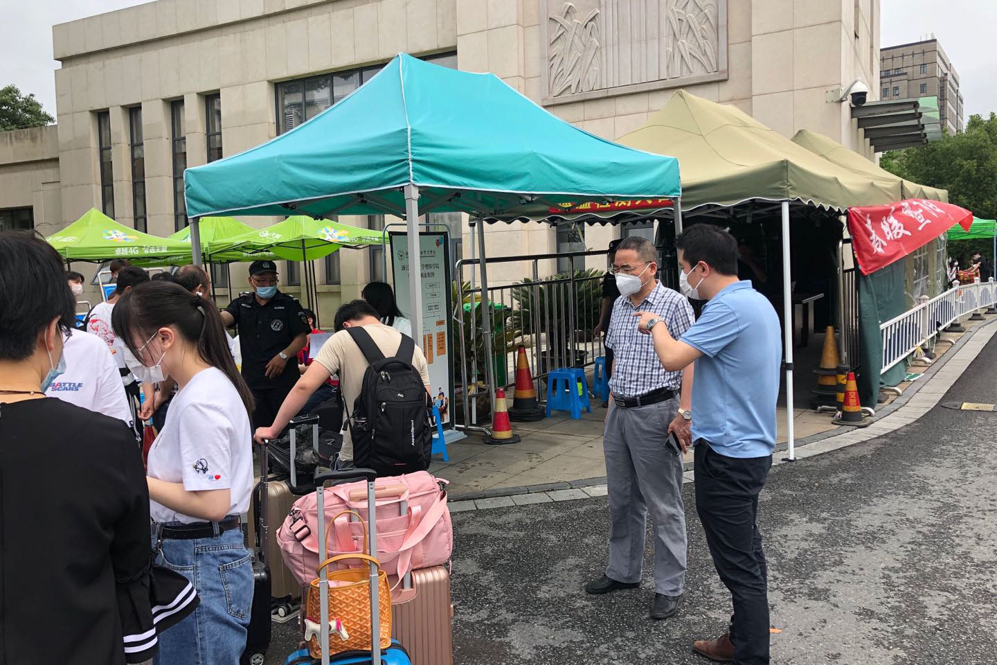 继续教育学院细致安排各个关节,切实把好每个关口。落实学生下车点、行李消毒点、现场报到缴费点、医疗保障点、隔离点、出入管理扫码点、人脸识别拍照采集点、秩序维护组、后勤保障组、志愿者工作组等。学生返校报到过程中,报到过程严格体温检测、行李消毒、健康申报码核验、可以返校指令核查、健康状况信息登记表上交、人脸识别登记拍照的程序,整个报到流程快速、平稳、安全、有序。