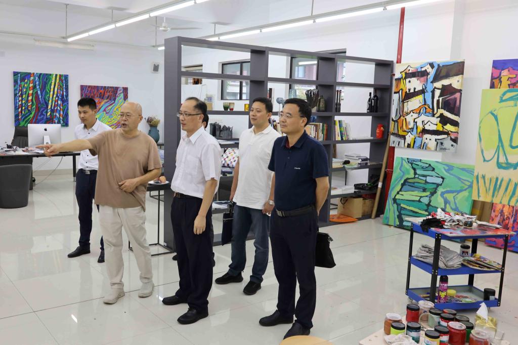 8月4日,浙江省委统战部副部长陈安率部机关涉侨处室主要负责人走访了晨晓艺术与设计学院,陈安副部长一行参观了晨晓工作室,并与学院领导及相关人员举行了座谈交流。必赢76net线路官网副院长袁志刚、办公室、晨晓艺术与设计学院相关负责人分别陪同参观和参加座谈会。