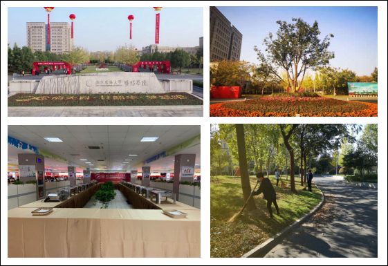 优美的校园环境是提升活动效果的关键。公共保障部多次对接物业公司、园艺公司,研究做好院庆期间校园环境提升与美化布置工作。全体保洁人员放弃休息时间,加班加点,对校园落叶、白色垃圾、顽固污渍开展地毯式清理;在南大门、香榧树花坛、活动中心等区域提前布置,摆放花卉,为校园绿化“锦上添花”,营造出隆重热烈、喜庆祥和的院庆氛围。