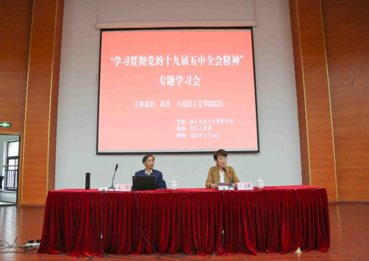 11月26日下午,学院召开基层党组织负责人培训会专题学习贯彻十九届五中全会精神。浙江农林大学马克思主义学院院长、马克思主义理论学科带头人高君应邀作主讲报告。学院各党总支书记、副书记、各党支部书记、教职工党员、第30期分党校中高级班学员、2020年下半年发展对象参加本次培训会。报告会由学院副院长李文莉主持。