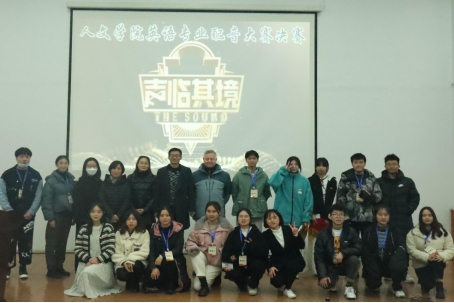 为巩固和检验英语学习的效果、营造浓厚的英语学习氛围,丰富第二课堂活动,帮助同学们提高口语能力,加强英语影视爱好者之间的艺术交流,人文学院英语专业于2020年12月24日下午在人文4110报告厅举办第一届 “声临其境” 英语配音大赛活动。人文学院党总支书记宣王威、党总支副书记石杭科出席本次活动,英语专业部分教师、学生与外教David担任评委,英语专业2018、2019、2020级学生参与本次活动。
