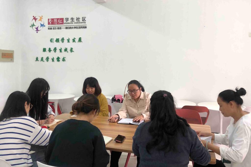 2021年4月22日下午,学生社区在学生公寓4号楼会议室召开工作推进会议。学工部主任负责人,各楼指导员及办公室职员参加了本次会议。