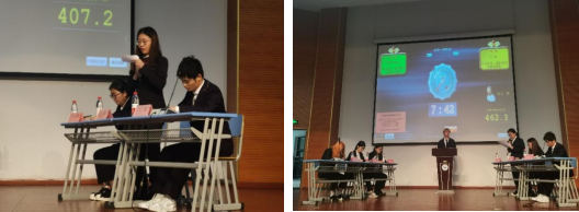紧接着是辩论赛,辩题为"学习党史,我们更应该铭记苦难还是辉煌"。双方辩手多次交锋,热情澎湃,辩手们有条不紊地表达自己的观点,立论攻辩都准备充分。他们或风趣幽默,或激情飞扬,或从容不迫,无不展示着各自风采。攻辩过程中,正反方敏锐捕捉对方的细节漏洞,展开攻势,并结合生活中的例子巩固立场。观众时而仔细聆听,时而热情与辩手互动。通过本次辩论赛,不仅锻炼了商学院学子的辩论能力和写作能力,也能提高同学们的思维反应速度、沟通技巧,增强语言组织能力和应变能力。