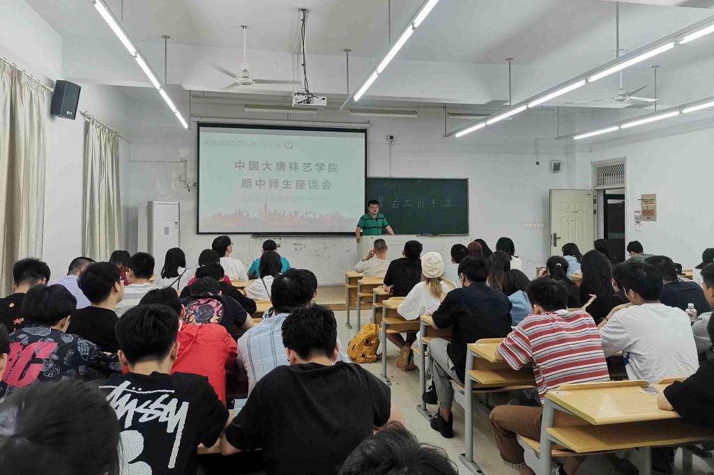 5月22日下午,中国大唐袜艺学院在人文楼2113室举行期中师生座谈会。中国大唐袜艺学院各产业班班主任及80余名产业班学生参加活动。