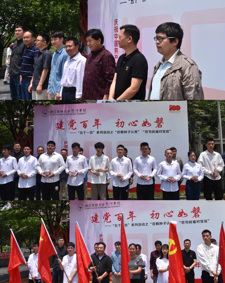 为庆祝中国共产党成立100周年,加强广大师生对建党百年光辉历史的学习与认识,坚定理想信念,牢记初心使命,传承红色基因,赓续精神血脉,学院于5月21日在食堂门口小广场举办“建党百年 初心如磐”系列活动之“百颗种子认养”“百句祝福对党说”,本次活动由园林学院党总支承办。必赢76net线路官网党委副书记高国俊、资深教授李根有出席本次活动,各二级学院党总支书记、副书记、支部书记以及师生党员代表参加。