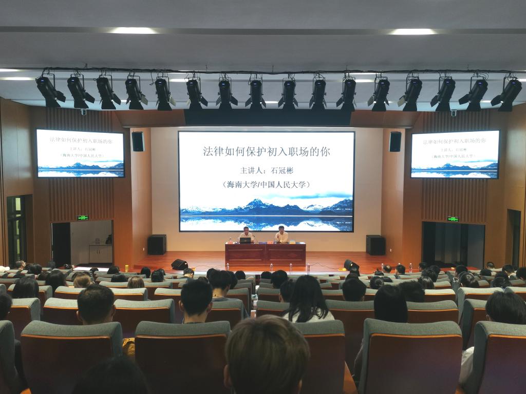 石冠彬教授互动式、开放式授课,通过让学生了解相关就业法律,了解职场法律常识,避免刑事风险,如何看待当今时代的“躺平文化”等四个方面来论述,鼓励同学们运用法律知识维护自身的合法权益,进一步提高法律意识,做知法、懂法的明白人。石教授风趣幽默的谈吐深受学生喜爱,讲座内容融学术性、实用性、指导性为一体,使同学们对相关法律有了更加形象生动地认识,引起学生的极大兴趣,现场气氛活跃,同学们纷纷表示受益匪浅。
