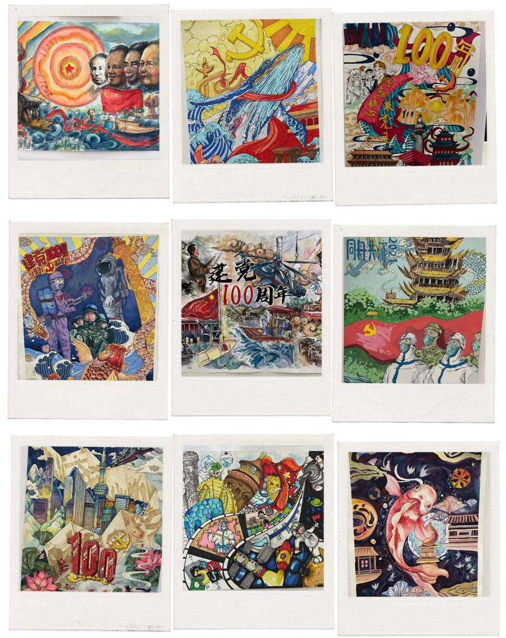 百年的奋斗与辉煌、光荣与梦想,不仅是一笔宝贵的精神财富,同时也为文艺作品的创作提供了极其丰厚的养分。前期通过向全院师生征集以“建党100周年”为主题的绘画作品,共有130幅绘画作品投稿,经专家评审,一百幅手绘作品入围并参与此次展出。同学们结合所学专业,将对党的歌颂与赞美赋予笔端,在画纸上描绘出建党百年来的时代变迁和生活变化,传承红色文化,赓续精神血脉,追寻光辉历程,倾诉对党百年华诞的祝福。