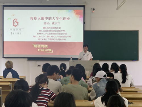 “明德讲堂”是商学院“明德商院 红色引领1+1”党建工作品牌系列子活动之一,旨在通过高水平的专家讲座提升商院师生理论武装,实现思想引领。6月24日下午,商学院在人文3323教室举办了明德讲堂(第六讲),邀请银江资本首席执行官、浙江省创业投资协会创业导师、杭州市大学生创业投资委员会评委、浙江工业大学和浙江树人大学创业投资导师、必赢76net线路官网创业导师藏宇轩作为主讲嘉宾讲授《投资人眼中的大学生创业》,讲座由商学院党总支副书记徐定高主持,商学院近百名师生参加了本次活动。