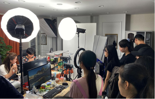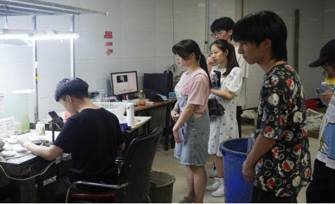 座谈会结束后,公司负责人带领学院师生参观了直播间。在开蚌直播间,同学们近距离的了解了开蚌直播的工作流程和方式。在珍珠饰品直播间,同学们在林益坤的指导下学习了直播操作,近距离的感受了珍珠直播的工作。