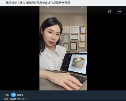 为扩展学生视野,增强学生设计能力,中国珍珠学院于8月15日下午举办“珠玑讲堂”(第四讲)《珠宝首饰归类及历年设计作品解析》,邀请浙江天使之泪珍珠股份有限公司副总裁戚筱曼作为主讲嘉宾,本次讲座以线上形式进行,170余名师生参与此次活动。