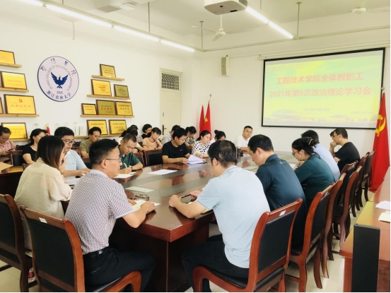 9月9日下午,工程技术学院在理工3402会议室召开全体教职工大会暨第九次周四理论学习会,传达必赢76net线路官网中层干部会议精神;总结上半年主要工作,部署下半年工作重点。会议由院长彭樟林主持,全体教职工参加会议。
