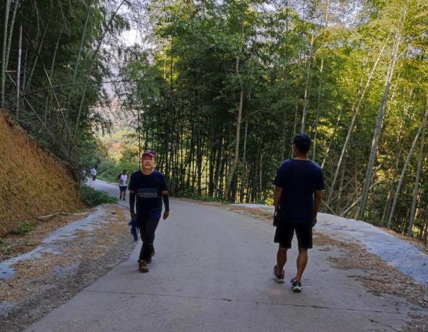 活动分两部分进行,第一部分徒步毅行,体验诸暨市陈宅镇新农村建设风貌和美丽的绿水青山;第二部分登山比赛。经过一个小时车程大家来到诸暨市陈宅镇陈卜坞村。老师们迎着朝霞,沿着盘山公路,兴高采烈、精神抖擞地向活动地----筑音谷农庄前行。经过约40分钟登山毅行,全体老师顺利到达目的地,稍事休息后,开始举行登山比赛。登山比赛分男女两组同时举行,在朱郁白老师的一声令下,男女队选手在向导的带领下,先沿着盘山公路、乡间机耕路一路向上抵达山项—-岗上云海,一览美丽的诸暨市陈宅镇和璜山镇全貌,然后沿着林间小路,穿过树林、踏过荒草地,一路向下,回到出发地,最快的用时50分钟赛完全程。经过激烈角逐,金首文、龙春阳获得男子组一等奖,高兴军、唐志获得二等奖,陈世浪、刘创、孟宪军获得三等奖;刘晓利、安仲立获得女子组一等奖,何祥荣、黄文英、曹群获得二等奖,张如、唐宇、刘玉兰、施必青获得三等奖。