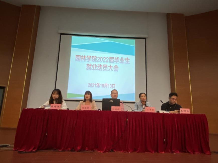 为全面落实教育主管部门和学院就业创业要求,推动2022届毕业生高质量就业,帮助毕业生端正就业心态、认清就业形势、了解就业流程、掌握就业技巧,园林学院于2021年10月13日晚在明珠报告厅召开2022届毕业生就业动员大会。