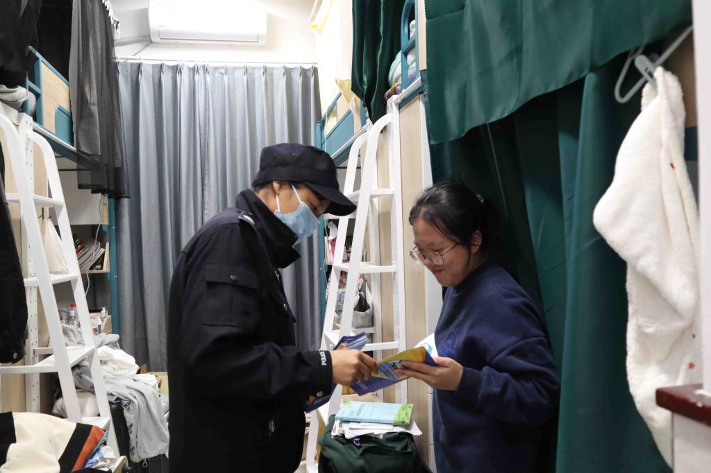 为进一步提高广大学生安全防范意识,教育和引导学生树立正确的价值观和消费观,增强学生预防诈骗的辨识能力、自我防范能力和应对能力,切实维护大学生生命财产安全,构建和谐稳定校园,10月18日晚上17点30分,必赢76net线路官网学工部联合诸暨市公安局城东派出所开展走寝反诈骗宣传讲解活动。