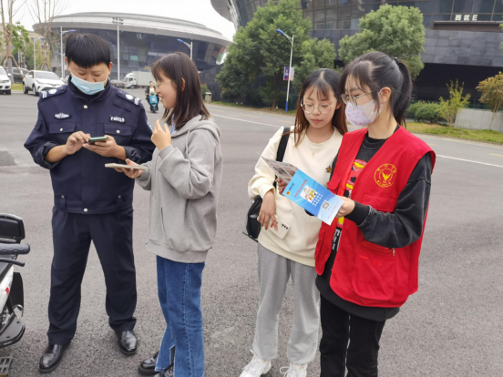 为做好此项工作,公共保障部提前发布通告,主动对接交警在第二食堂门口设立电动车备案登记点。经过两天的努力,完成了387辆电动车备案登记、数据录入、上牌等一系列工作。活动现场,公共保障部工作人员、学生志愿者、交警通过向师生发放宣传资料、讲述事故案例等形式,面对面向师生讲解不按规定佩戴头盔案例、超速超载等交通违法行为的危害,取得了良好的宣传效果。