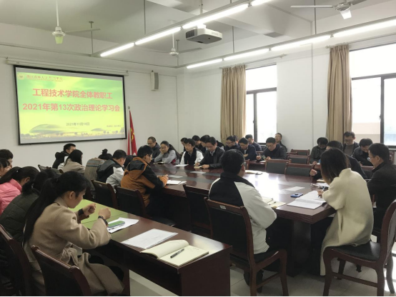 11月18日下午,工程技术学院在理工3402会议室召开2021年度第十三次政治理论学习会,会议由工程技术学院院长彭樟林主持,全体教职工参加会议。