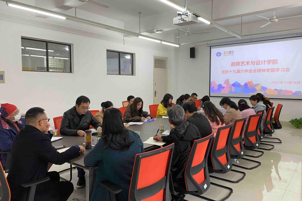 以史为鉴 勇毅前行——晨晓艺术与设计学院召开党的十九届六中全会精神专题学习会