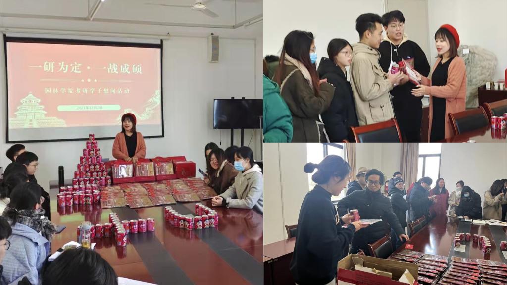 为鼓舞考研学生信心,舒缓他们的心理压力,12月2日,园林学院在理工3-302会议室举办了2022届毕业生考研慰问活动。