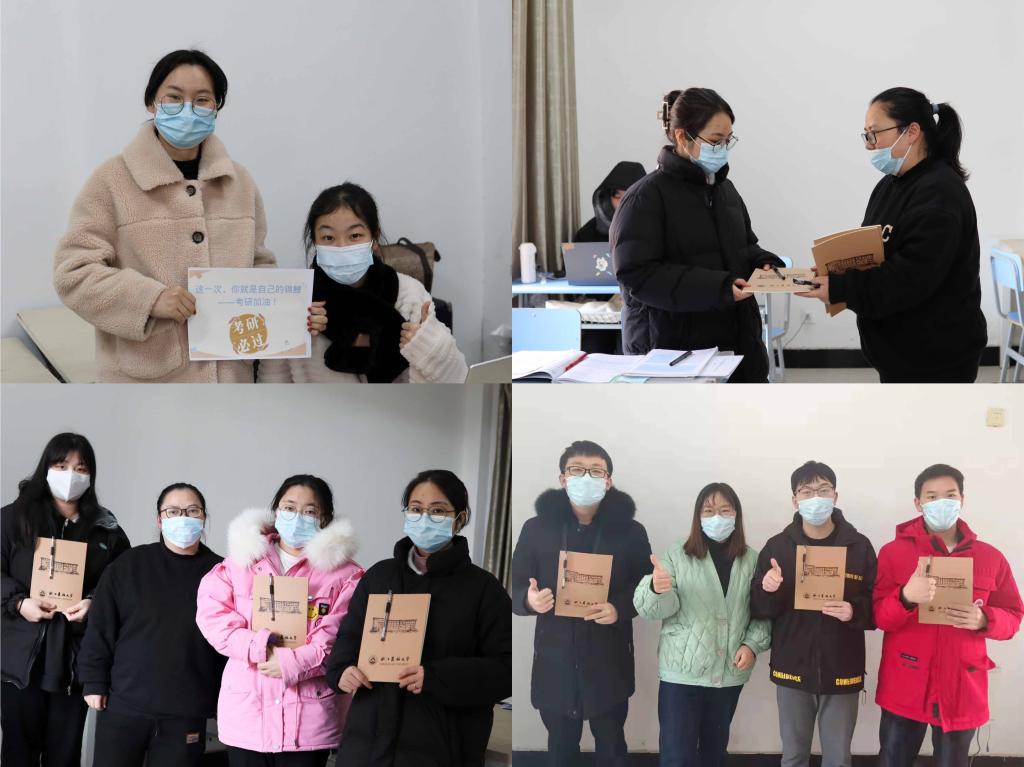 今年全国硕士研究生统一招生考试已进入倒计时,12月22日学生社区在自习室为考研的同学们送上祝福和暖心礼物。在自习室,社区生活指导员代表学生社区向备战冲刺的考研学子表达了慰问,激励学生坚定信心,再接再厉,在最后冲刺的几天里,要劳逸结合、沉着应考。
