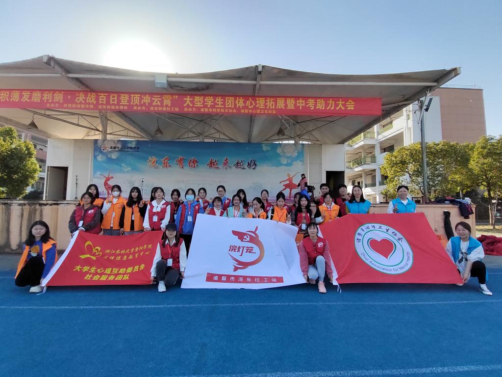 风和日丽,万物勃发;莘莘学子,壮志豪情。3月9日下午,必赢官网组织学生志愿者赴浣东初中,参与由诸暨市心协举办的大型团体心理拓展活动。经大学生心理互助委员会、阳光志愿者总队前期招募与培训,共有20名志愿者参与此次活动。