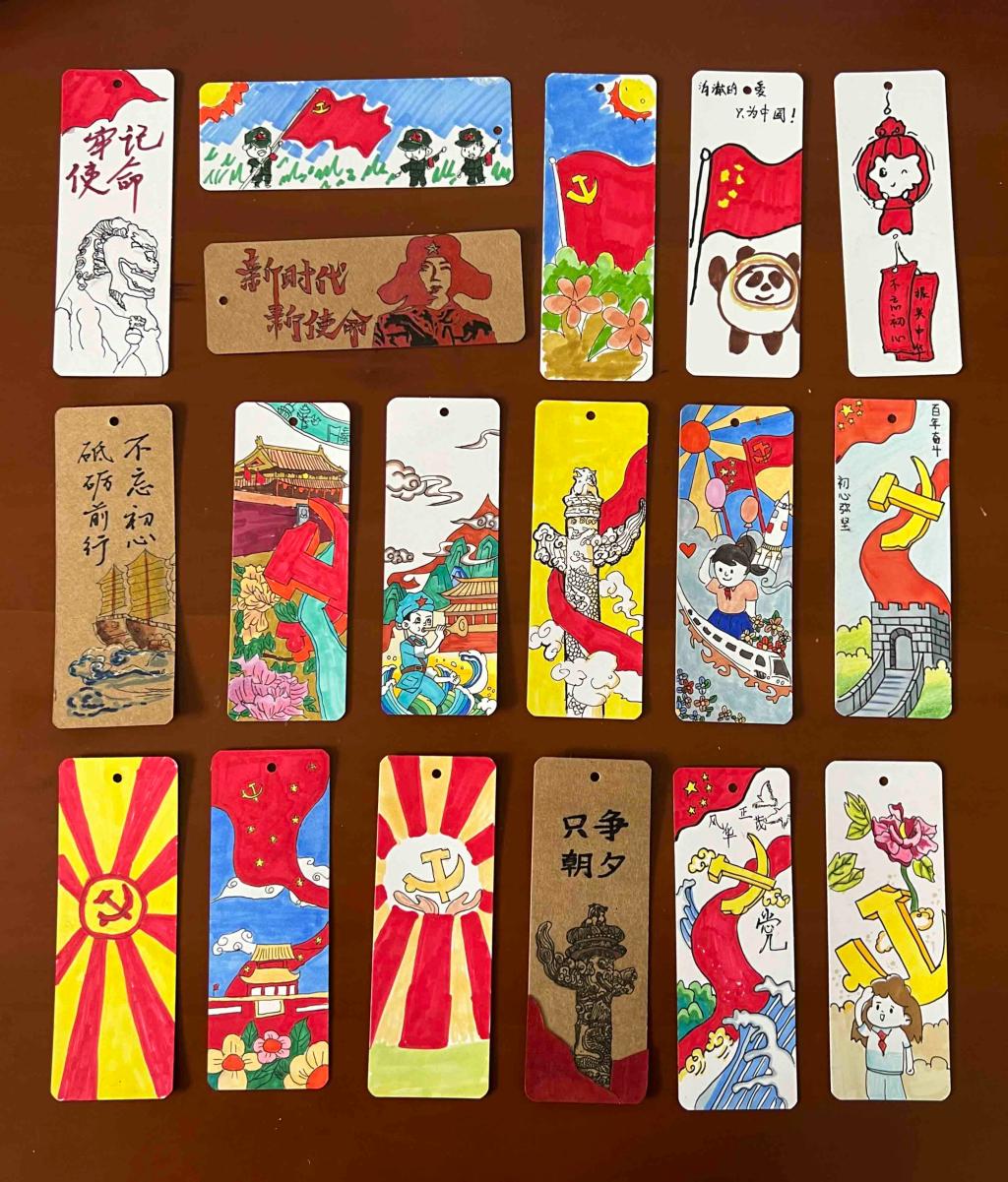 在活动中,同学们结合红色精神,发挥创意,亲手绘制书签,表达内心对于党和国家的热爱与祝福,感受中国共产党历久弥坚、生生不息的革命精神。