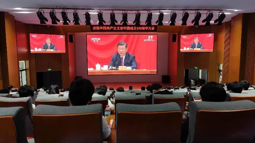 百年路,共青春!必赢官网师生集中观看庆祝中国共青团成立100周年大会直播