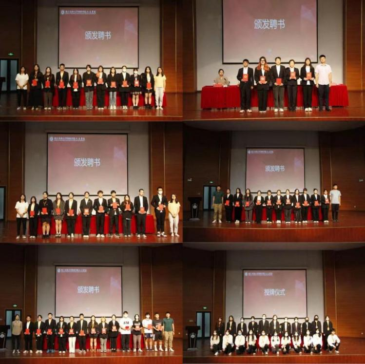 随后,出席活动的领导、老师分别为2021-2022学年人文团学全体干部及班助颁发了聘书;新任团学干部为代表干事佩戴工作证。