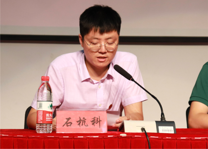 石杭科首先对上一届人文团学干部所做出的积极贡献与出色表现表示衷心的感谢,并对新一届的团学干部、干事表达出热烈的祝贺与欢迎,并对全体团学成员提出三点希望:一是强化思想政治教育,锻造优良队伍;二是加强自身作风建设,提升实干精神;三是学生干部需加强综合素质培养,提升工作能力。