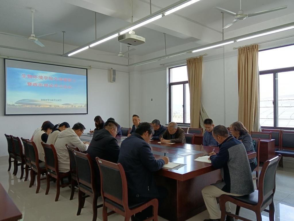 10月13日下午,生物环境学院在理工3502会议室召开全体教职工暨政治理论学习会议,会议由生物环境学院党总支副书记(主持工作)马忠兴主持,全体教职工参会。