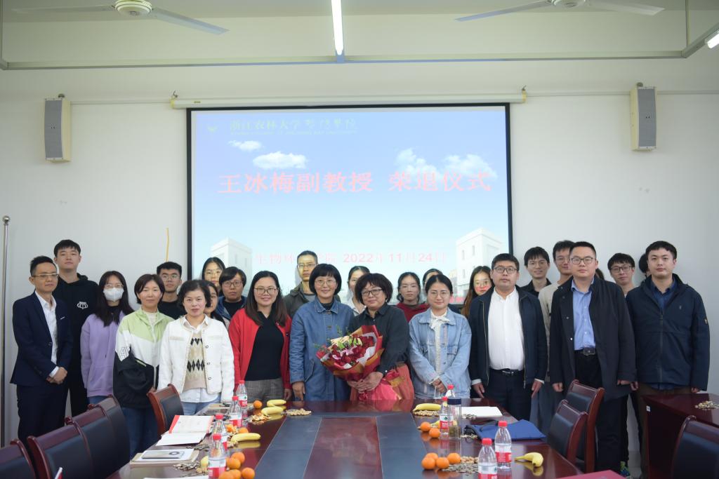 11月24日下午,生物环境学院在理工3502举办王冰梅副教授的荣退仪式。必赢76net线路官网副院长李叔君出席。生物环境学院党总支副书记(主持工作)马忠兴、副院长徐润生,教职工代表及中药学专业学生代表参加仪式。仪式由马忠兴主持。