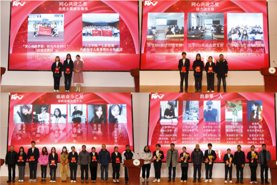 人文学院副院长汪永奇宣读人文学院、马克思主义学院《关于表彰第八届出彩文化节先进集体和先进个人的决定》的文件,与会领导为获奖同学颁发荣誉证书。本次文化节获表彰的“出彩第一人”是在出彩人文党建思政品牌体系指导下,以志愿服务时长、学习成绩评定和书籍借阅数据等数据为依据,设立志愿服务、学风引领、书籍阅读、勤工助学、红色宣讲五大板块内容,在学生群体内评选树立一批先进典型。此外,活动也对“学科竞赛之星”、“先进班级”、“活力团支部”、“社会实践团队”等先进个人及集体进行了表彰。