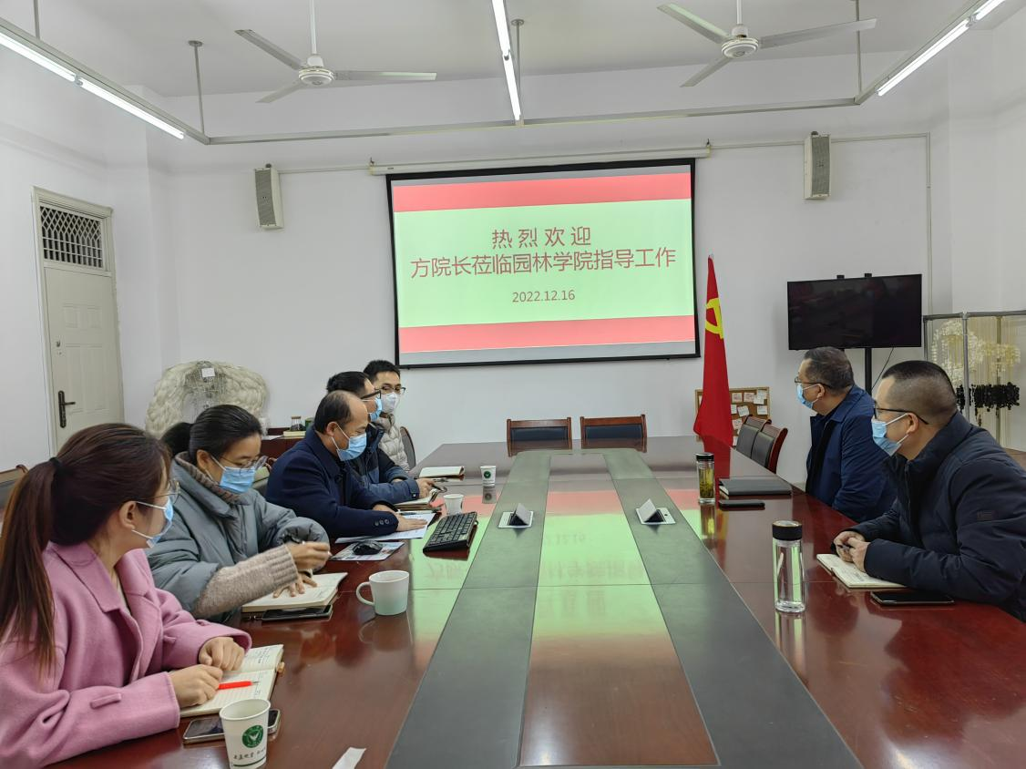 会上,方铭还与园林学院班子成员、各专业负责人进行了交流,细致了解了各专业的特色、优势和师生情况。