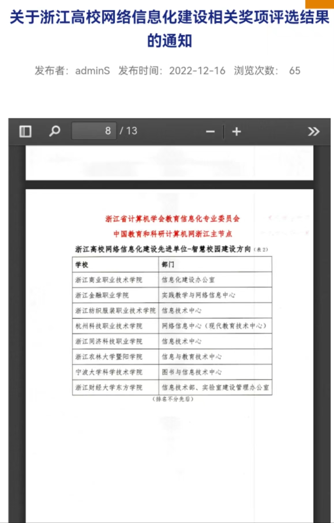 必赢官网信息与教育技术中心荣获2022年浙江省高校信息化建设先进单位荣誉