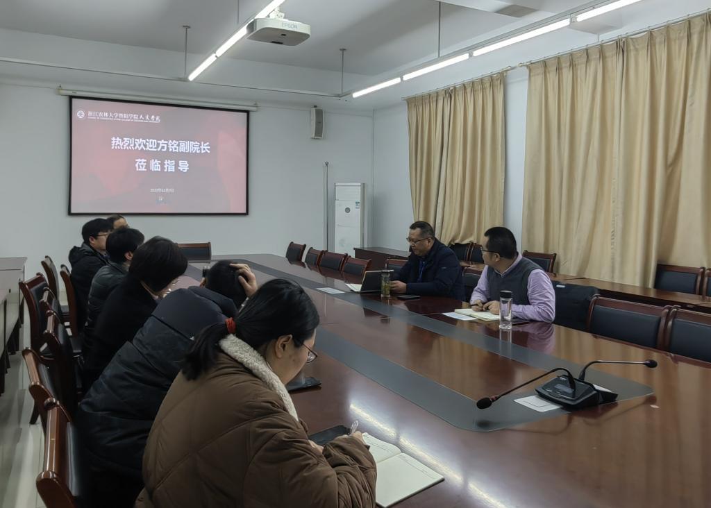 12月7日下午,学院方铭副院长到人文学院、马克思主义学院指导工作,社会合作部主任王钟陪同调研,人文学院、马克思主义学院班子成员及部门负责人参加座谈。
