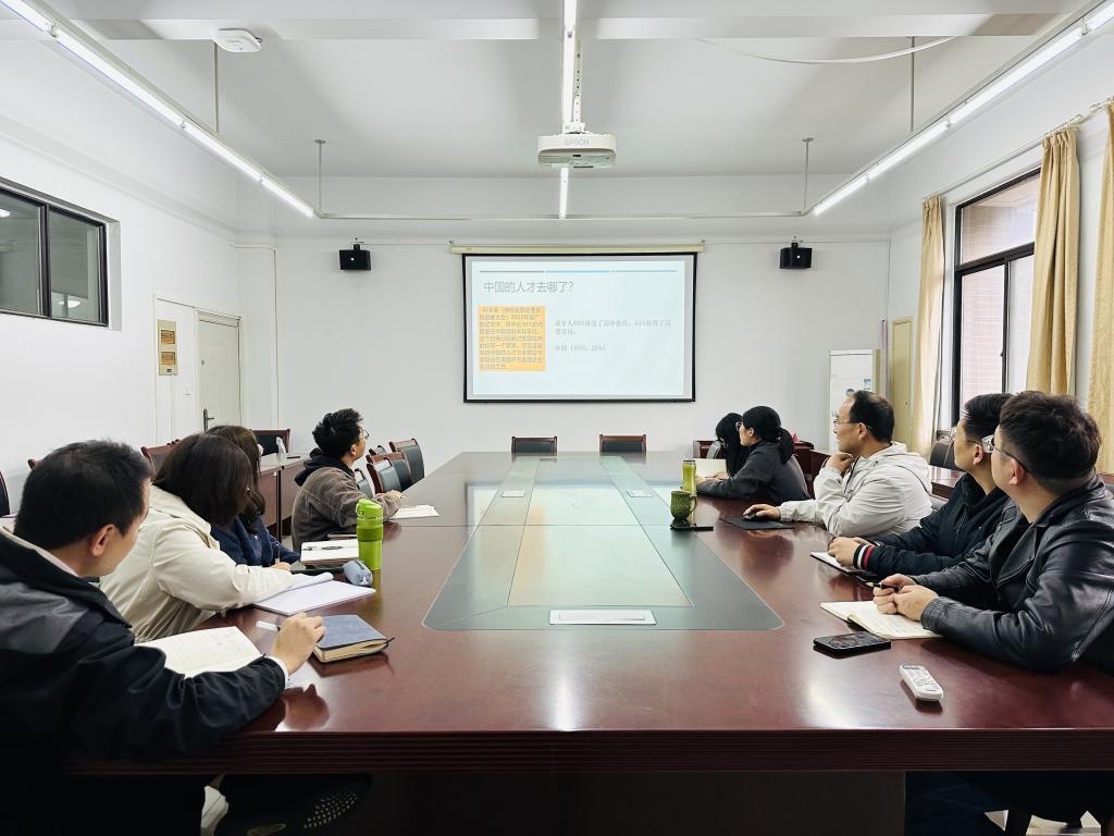 3月20日,商学院党总支书记张佩成以《实施科教兴国战略 强化现代化建设人才支撑》为题,为教工第一党支部全体党员讲授学习宣传贯彻党的教育、科技、人才统筹部署的创新要义。