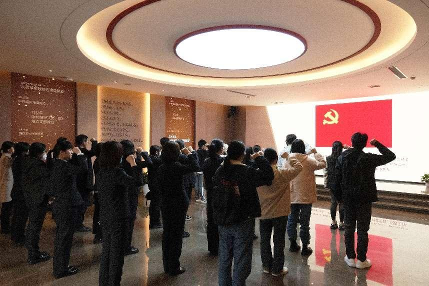 参观结束后,全体党员在一楼展厅重温了入党誓词。