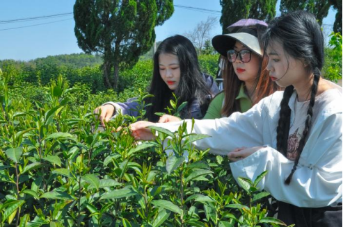 经过短时间的采摘培训后,党员志愿们化身“采茶人”,帮助农户采摘新茶,形成茶山上一道靓丽的风景线。