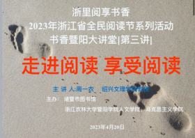 本次大讲堂依托2023年浙江省全民阅读节展开,旨在推动全民阅读,构建书香社会,让阅读成为“书香浙江”的生活方式,提高全省人民的文化素养。人文学院、马克思主义学院公共外语教研部与诸暨市图书馆携手共建教育实践基地。此次大讲堂正是实践基地成立后的第一个项目,为双方共同开展活动奠定了良好的基础,也为后续校地合作开启了新的篇章。