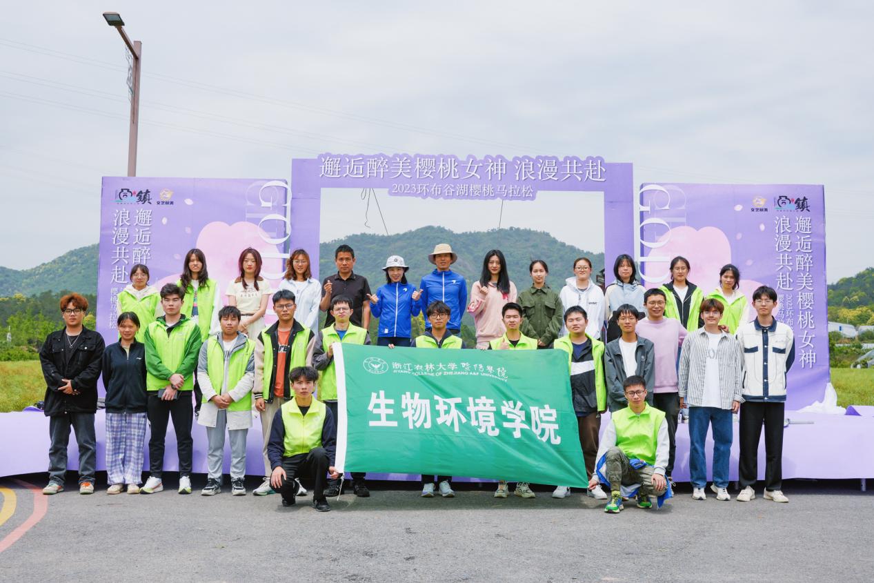 4月22日,由诸暨市文化广电旅游局、诸暨市教体局、诸暨市妇女联合会、诸暨市同山镇人民政府主办的2023年环布谷湖樱桃迷你马拉松鸣枪开跑。为助力赛事顺利进行,生物环境学院30名学生志愿者奔赴一线开展志愿服务。