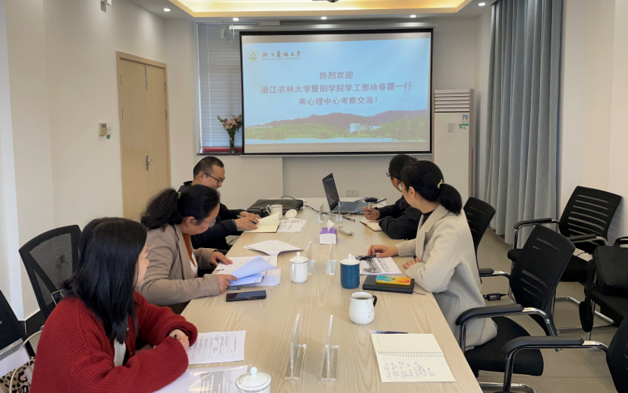 为做好学院心理健康教育工作标准化建设,迎接省教育厅实地调研,4月25日,学工部主任徐春霞带领专职心理教师赴浙江农林大学心理中心参观学习。