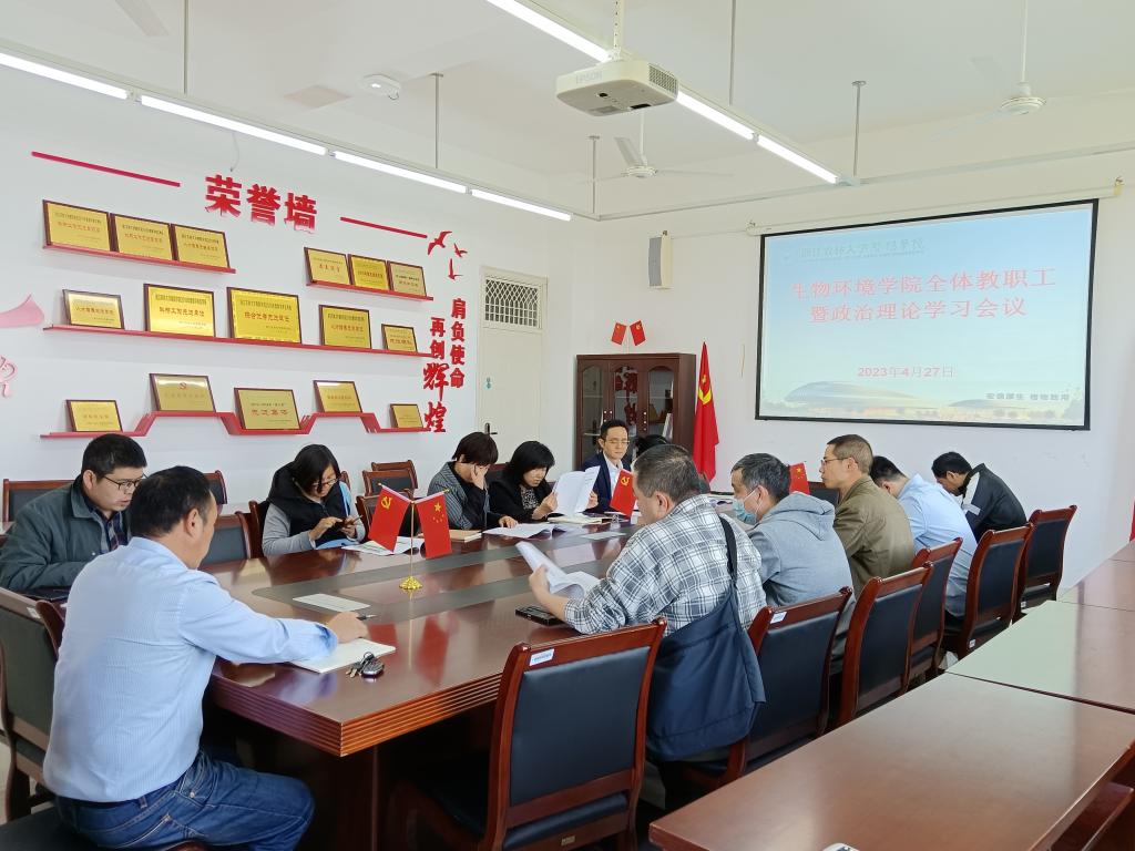 4月27日下午,生物环境学院在理工3502召开全体教职工暨政治理论学习会议。生物环境学院院长严国兵出席会议,会议由生物环境学院党总支副书记(主持工作)马忠兴主持,全体教职工参会。