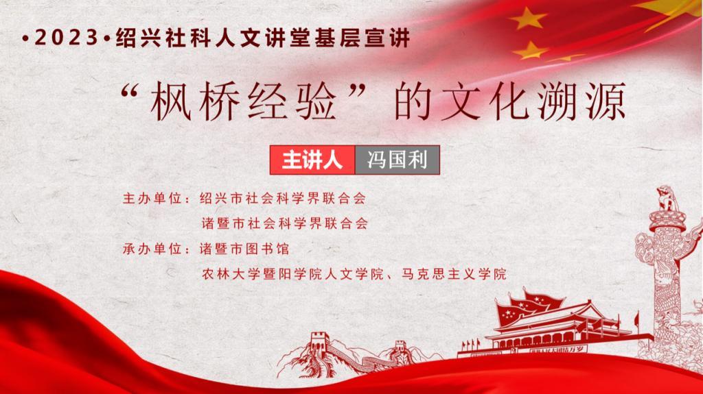 诸暨市图书馆联合人文学院、马克思主义学院顺利举办“枫桥经验的文化溯源”专题宣讲